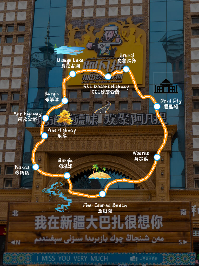 Traverse the S21 Desert Highway to soak in the sapphire blue of Ulungur Lake, venture into Hemu’s golden autumn and walk in the winds by Kanas Lake, then head back wrapped in the earthly charm of Urumqi—this trip lets you hold the wildness and tenderness of northern Xinjiang right in your hands.
