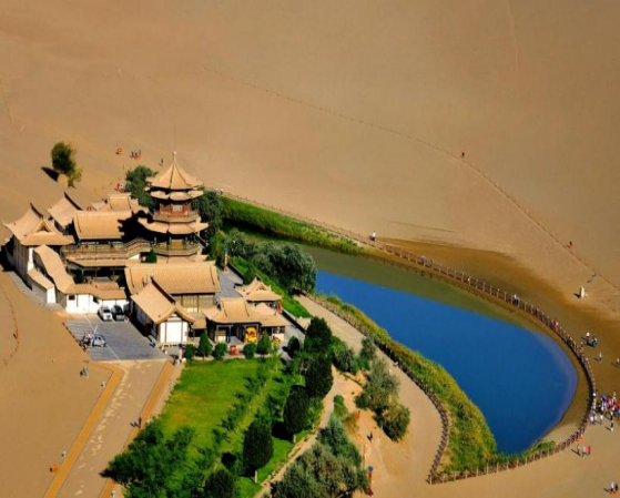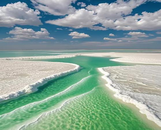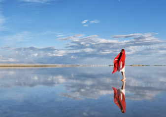 Subsequently, proceed to [Lover's Beach] by car. The beach features a vast shallow area with crystal-clear water that reveals the bright yellow lakebed. A long plank road stretches into the lake, complementing the weeping willows and creating a romantic atmosphere. Continue to the [Lige Viewing Platform], surrounded by mountains, blue sky, and white clouds. From here, you can take in the stunning scenery of the lake and the towering mountains reflecting in the jade-like water, creating an illusion of being within arm's reach yet seemingly distant.