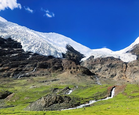 Next, head to [Jade Dragon Snow Mountain Scenic Area], hailed as the "Museum of Modern Glaciers". Here, you’ll also find Ganhaizi, an alpine pasture with endless green grass and blooming flowers, as well as Baishui River, which resembles a white river winding through the landscape. Take the [Spruce Meadow Cable Car] (Jade Dragon Snow Mountain has a high altitude; if you need oxygen or warm clothing, consult the guide and purchase them at your discretion). During the cable car ride, admire the scenery of the primeval alpine forest. Afterwards, visit [Blue Moon Valley], known as the "Fairy’s Terraced Fields" (electric cart fee not included: 60 RMB per person). Formerly known as "Baishui River", Blue Moon Valley gets its name from its crescent-shaped valley and crystal-clear blue water under sunny skies, resembling a blue moon inlaid at the foot of Jade Dragon Snow Mountain.