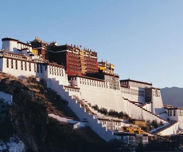 - Potala Palace The Potala Palace is acclaimed as the "Pearl on the Roof of the World" and stands as the highest-altitude palace globally. As the symbol of Tibet, its structure is built with alternating red and white stone blocks, featuring overlapping towers that rise majestically, embodying an architectural style that harmonizes Han Chinese and Tibetan cultural elements. Stepping into the Potala Palace, you will discover that it is not merely a religious sanctuary, but also a treasure trove of architectural artistry. The murals, sculptures, thangkas, and other artworks within the palace all showcase the wisdom and creativity of the Tibetan people.